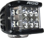 One of RIGID?s most versatile, compact lighting solutions just got better with the RIGID D-SS PRO, Dually-Side Shooter Professional Race Output LED pod. Perfect for any application that requires a wide spread beam, including A-Pillars, Fog Lights, and motorcycle applications. The D-SS PRO incorporates powerful optics and recently improved LED technology for greater output with the added benefit of additional LEDs aimed to the side for a much broader beam. The D-SS PRO packs a powerful punch with up to 102% more raw lumens depending on the optics chosen The D-SS PRO fixtures boast up to 120-degrees of horizontal lighting coverage when used in pairs or when used in the single light applications. The main forward-facing LEDs are available with RIGID?s advanced Spot, Flood, or Driving optics, so there?s a D-SS PRO lighting solution for nearly any application. The D-SS PRO LED lights are available in pairs with three side-shooting LEDs on one side of each fixture, or in single applications with a pair of side-shooting LEDs on both sides of the fixture. Only RIGID provides a broad, powerful lighting solution in such a compact package.