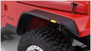 Be ready for anything — equip your Jeep Wrangler with Bushwacker Flat Style Fender Flares. They're the first and only flat style flares made to absorb impact, using our proprietary Dura-Flex(R) 2000 TPO — the thickest, most flexible material available. Flat Style Fender Flares maximize your tire coverage and wheel articulation for severe off-road use. Yet they're carefully engineered to install with a minimum of extra tools and bodywork (see the installation guide for your specific vehicle for details). For example, our mounting brackets bolt straight onto your Jeep for added strength and simpler fitting. Our design integrates neatly with the factory rocker guards, and incorporates DOT-compliant LED side marker lights and fully molded wheel well protection. The flares are 100% UV protected, too, to stop chalking in its tracks. If you want the look — and the real-world performance — that best fits an American icon, nothing goes with your Jeep better than Bushwacker Flat Style Fender Flares.