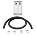 Mishimoto is proud to announce the release of our Compact Baffled Oil Catch Can, available in a two-port or three-port option. With years of oil catch can research and development time, Mishimoto has created the most effective compact oil catch can on the market. The Mishimoto Compact Baffled Oil Catch Can was designed to separate oil particles from the PCV/CCV air that would normally have just been routed back to your intake. The internal air diverter turbulates the air longer and ensures all the oil sinks to the bottom of the can, leaving nothing but clean air to pass through the 50 micron bronze filter to the intake. An internal baffle keeps the collected oil from splashing around under race conditions. This oil catch can features two ports, one inlet and one outlet, for easy installation on CCV and PCV systems. The 100% billet, 6061 aluminum can features 3/8" NPT threads at the inlet, outlet, and drain area and includes two black nylon fittings to make installation effortless. For maximum fitment options, the top mounting setup allows the can to be mounted from multiple angles. To make maintenance easy, the drain plug can be removed to allow for a return to the oil pan. The can is also 100% washable, unlike many other cans that require you to replace your filtration system.Our catch cans are different from most air-oil-separator (AOS) systems on a few levels. First, our catch cans are not heated. This means that all of the blow-by is able to condense in the can, including low-octane oil vapors and contaminated fuel vapors. Most AOS systems also drain the blow-by back into the oil pan, while our catch cans trap the blow-by and keep it out of the engine permanently. If you've seen what we've seen in the bottom of our catch cans, you won't want that draining back into your oil either.